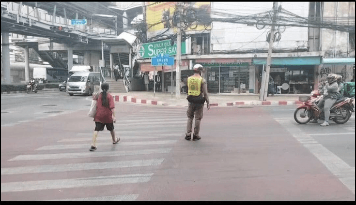 ช่วงวันที่ 7 กุมภาพันธ์ 2568 เวลา 15.20 น. งานจราจร สน.บางนา ภายใต้การอำนวยการของ พ.ต.ท.วุฒิกฤตย์ สอนแก้ว รอง ผกก.จร.สน.บางนา , พ.ต.ท.ธีรศักดิ์ สุปรียวัฒน์ สว.จร.สน.บางนา พร้อมด้วย เจ้าหน้าที่ตำรวจจราจร สน.บางนา อำนวยการจราจร ผู้ใช้รถ,ผู้ใช้ทางข้าม เพื่อป้องกันอุบัติเหตุ บริเวณถนนสุขุมวิท 101/1