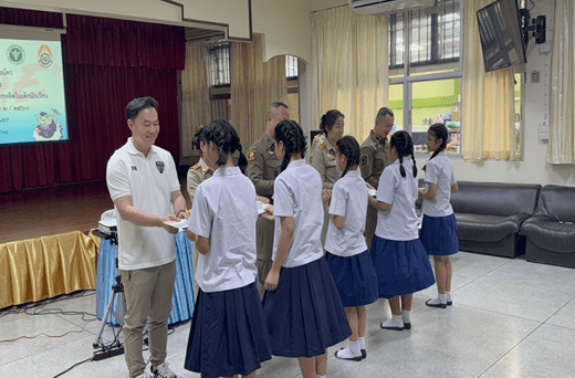 วันนี้ (3 มี.ค.68 ) เวลา 14.00 น. พ.ต.อ.สุรพงษ์ สุขแย้ม ผกก.สน.บางนา พ.ต.ท.นพรัตน์ นันทภูริศ รอง ผกก.ป.สน.บางนา มอบหมายให้ พ.ต.ต.นพวินทร์ ทวีธนะนิรันดร์ สวป.(ชส.)สน.บางนา เป็นผู้แทนประธานในพิธีร่วมกับ นายมงคล สาตรา ผู้อำนวยการโรงเรียนเพี้ยนพินอนุสรณ์พร้อมด้วยตชส.สน.บางนา (ครูตำรวจ(D.A.R.E.) ) และ คณะครูโรงเรียนเพี้ยนพินอนุสรณ์มอบใบประกาศนียบัตรให้แก่นักเรียน ชั้นประถมศึกษาปีที่ 5 ที่ผ่านการอบรมจบหลักสูตรตามโครงการการศึกษาเพื่อต่อต้านการใช้ยาเสพติดในเด็กนักเรียน (D.A.R.E.)ประเทศไทย ของสำนักงานตำรวจแห่งชาติ ณ โรงเรียนเพี้ยนพินอนุสรณ์