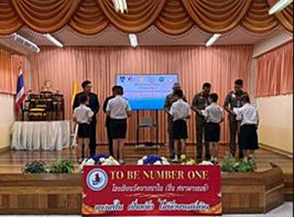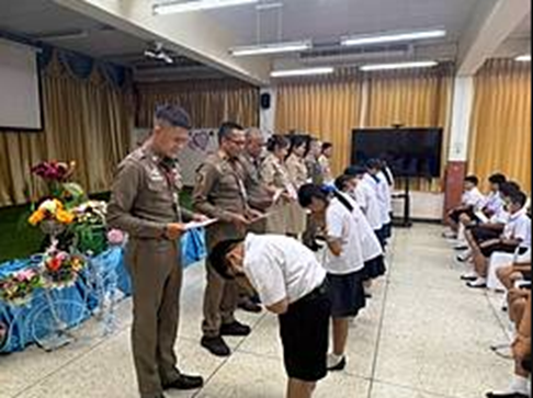 สุเทพ จะนันท์ รอง สว(ป.)สน.บางนา เป็นผู้แทนประธานในพิธีร่วมกับ ดร.วีรภัทร ไม้ไหว ผู้อำนวยการโรงเรียน