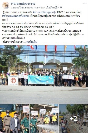(#)สน.บางนา จิตอาสา ช่วยแก้ไขปัญหาฝุ่น PM2.5 (#)วันนี้(28 ม.ค.63)เวลา10.00 น.-พ.ต.อ.นคร ทองพานิช ผกก.สน.บางนา พร้อมด้วย นายปัญญา เจนโสภณ ประธาน กต.ตร.สน.บางนา,พร้อมคณะ กต.ตร.ฯพ.ต.ท.อนุรักษ์ อิ่มละเอียด รอง ผกก.จร.ฯ ,พ.ต.ท.ประเสริฐ ชะเอมทอง รอง ผกก.ป.ฯ พร้อมเจ้าหน้าที่ฝ่ายจราจร ป้องกันปราบปราม ชุดปฏิบัติการตำรวจชุมชนสัมพันธ์-ประชาชนจิตอาสา-บริษัท อิตาเลี่ยนไทย จก. โครงการก่อสร้างบางกอกมอล์-สำนักงานเขตบางนา-นักศึกษา,ครู/อาจารย์ วิทยาลัยพณิชยการบางนา-พนักงานห้างสรรพสินค้าเซ็นทรัลบางนา (#)ชะล้างถนนตลอดทั้งซอย เพื่อลดปัญหาฝุ่นละออง บริเวณ ถนนเทพรัตน กม.1 ซอยบางนาตราด 1 และหน้าโรงเรียนนBerkeley International School ถ.เทพรัตน์ กม.1 เป็นไปด้วยความเรียบร้อย.(#)ด้วยความห่วงใยจาก สน.บางนา(#) จิตอาสา ช่วยแก้ไขปัญหาฝุ่น PM2.5