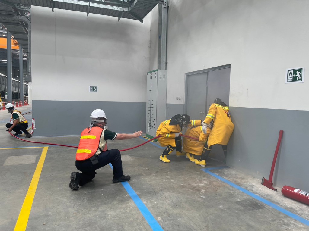 -เข้าร่วมฝึกซ้อมและร่วมสังเกตการณ์แผนฉุกเฉินในกรณีเกิดเหตุเพลิงไหม้ศูนย์ซ่อมบำรุงรถไฟฟ้าสายสีเหลือง ณ ศูนย์ซ่อมบำรุงรถไฟฟ้าสายสีเหลือง