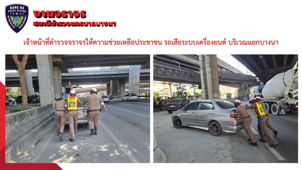 วันที่ 21 ก.พ.67 เจ้าหน้าที่ตำรวจจราจร ได้รับแจ้งขอความช่วยเหลือรถเสียระบบเครื่องยนต์ บริเวณแยกบางนา บางนา 6612,6617,6622 ให้การช่วยเหลือ นำพ้นกีดขวาง พร้อมติดต่อช่างดำเนินการต่อไป