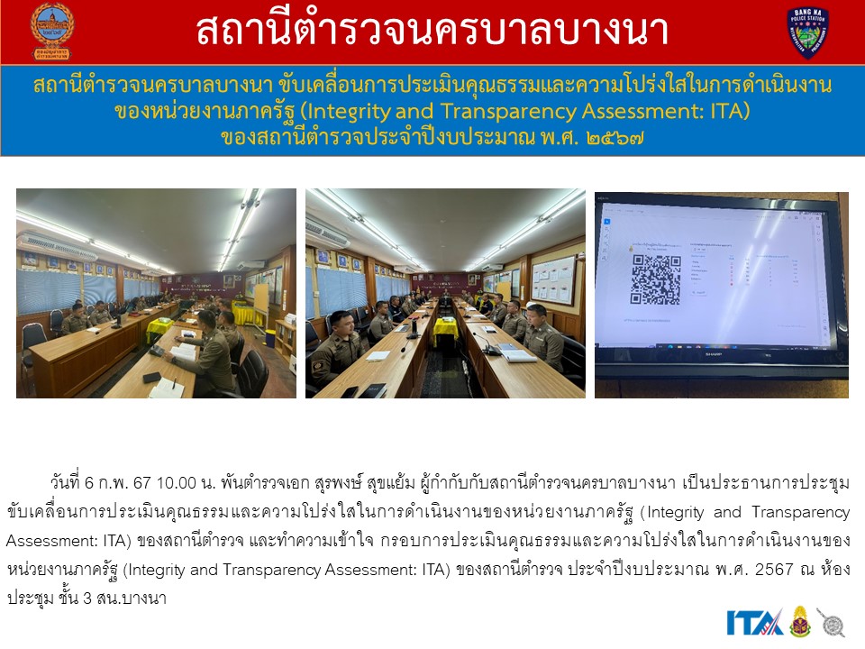 สน.บางนาประชุมการขับเคลื่อนการประเมินคุณธรรมและความโปร่งใสในการดำเนินงานหน่วยงานภาครัฐ….